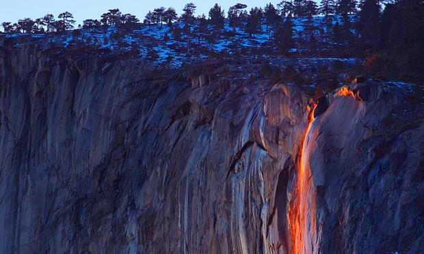 My readers, I absolutely agree from a photograph taken at the Yosemite National Park, this is a FIREFALL sunlight ILLUSSION. ZERO SPACE excerpt.