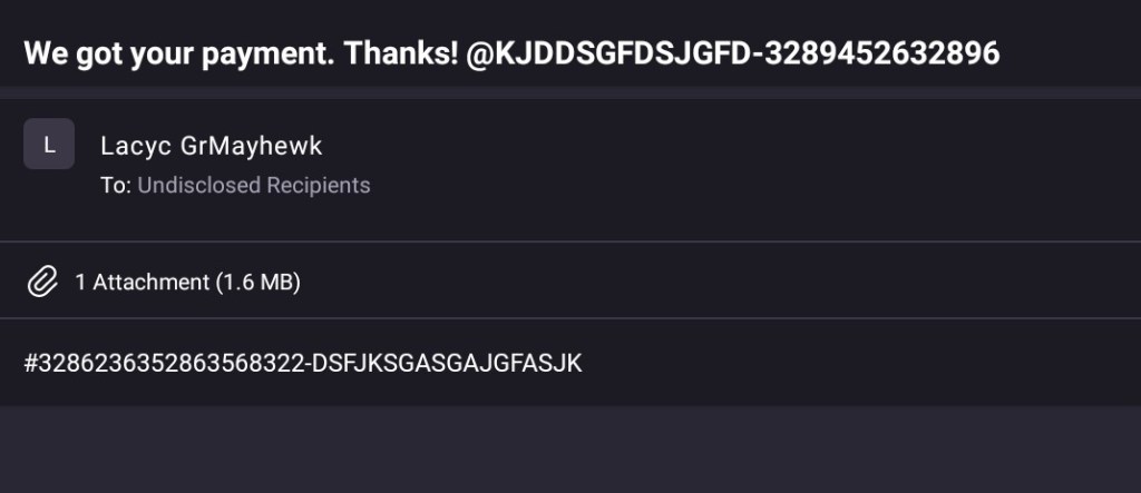 My readers, I have been paying for some shit I don’t know for four days now and I have whatever those receipts are and have not opened in case it’s uch worse trigger… My readers please help ask WRAY and those in charge of DIGITAL THEFTS what this is… Do you know …? DO YOU KNOW WHAT THIS SHIT, THIS THOUGHTLESS AND WORTHLESS TO ME CONFIGURATION OF NUMBERS IS…?