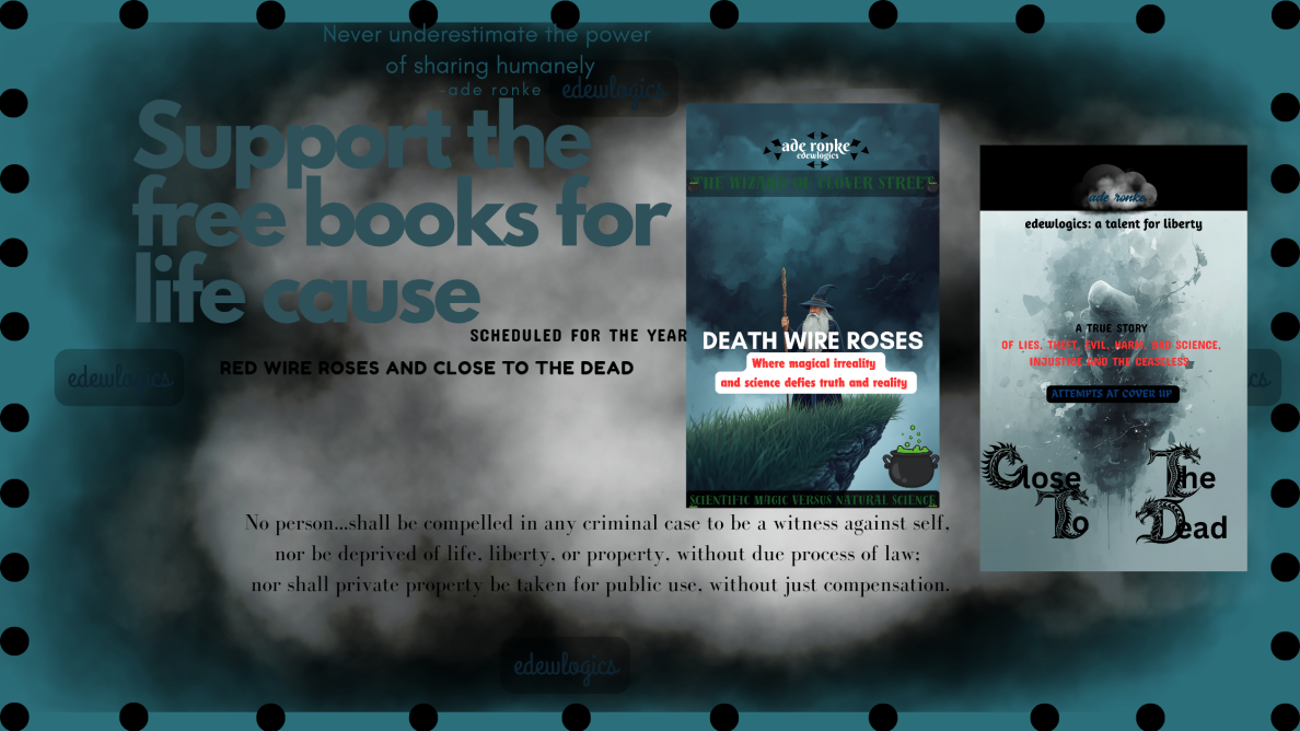 My readers, wherever you are in the world, I will never want to hide a book like CTTD in print versions behind some backdoor at a Bluesie jazz comedy fest. Do not make me something other than human and humane with my books. Give your support. CTTD has been a lesson in law. Justice must be achieved. Give your support and hold on to the relativity.